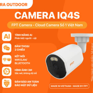 FPT Camera IQ4S là dòng thiết bị FPT Camera chuyên dụng để lắp đặt trong nhà và ngoài trời vừa ra mắt năm 2025. Phạm vi hồng ngoại 30 met, đèn rọi Floodlight LED, ban đêm có màu. Lưu trữ đám mây bảo mật 24/7, Human Detetion.